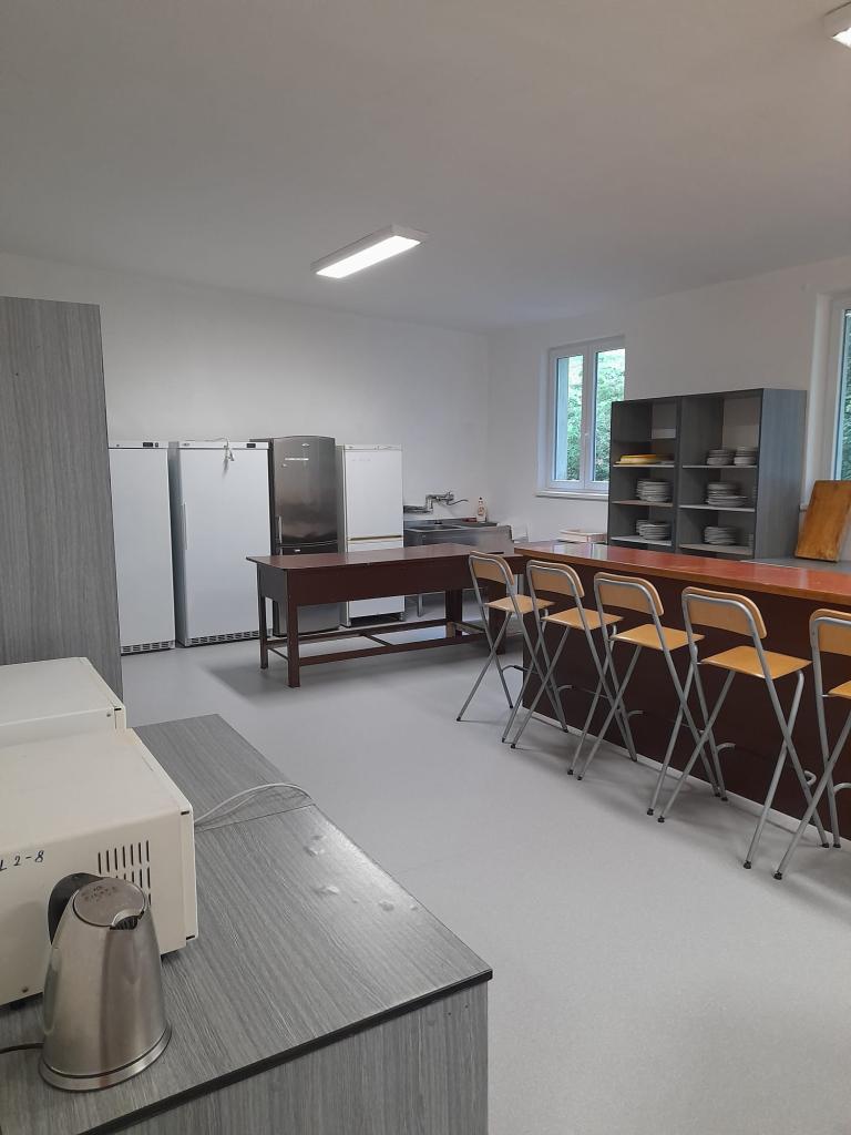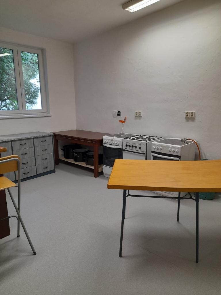 K dispozici je společné sociální zařízení (WC,sprchy), dostatečně vybavená kuchyň, jídelna, společenská místnost, herní místnost pro menší děti.