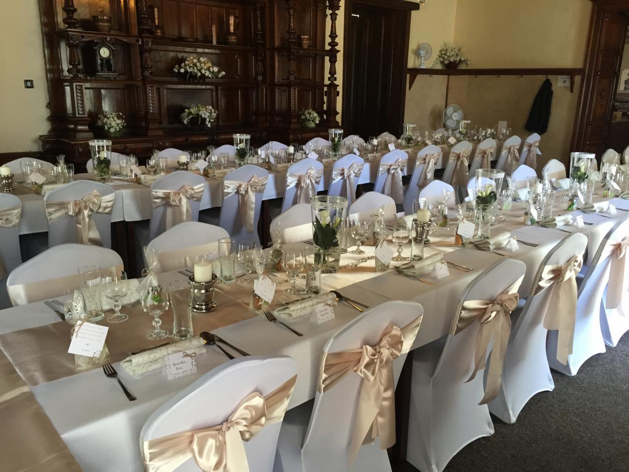 Při přípravě výzdoby prostor (i venkovních) spolupracujeme s firmami, které jsou schopny zajistit vše dle Vašich představ od květinových aranžmá až po kompletní výzdobu stolů, židlí, sálů.